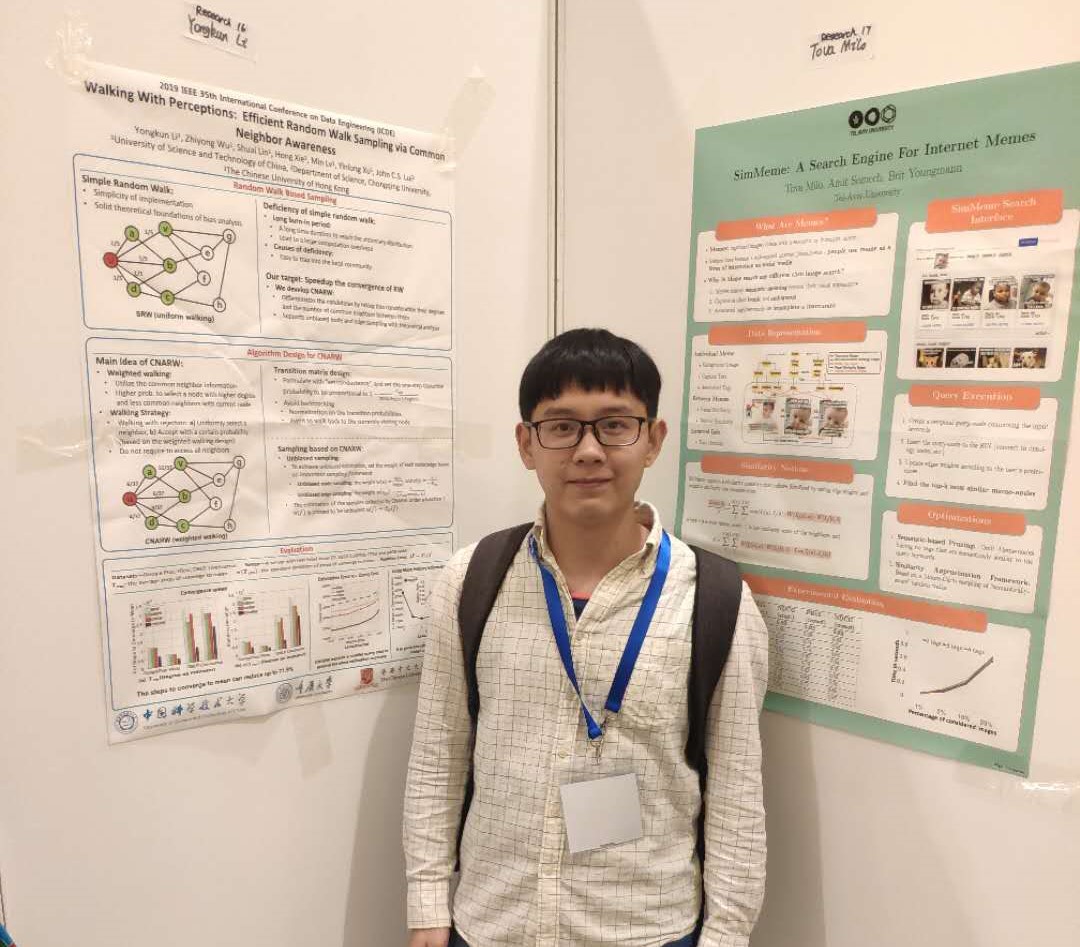 同时,实验室研一同学林帅赴澳门参加了ICDE会议并在会上关于实验室论文: “Walking with perceptions: efficient random walk sampling via common neighbor awareness.“做了汇报与展示,并且在Poster展区解答对论文感兴趣的学者的提问。他表示,此次会议对他来说具有非常重要的意义,不仅聆听到世界学术大牛的精彩演讲,在与他们的交流之中也获得了很多宝贵的意见。